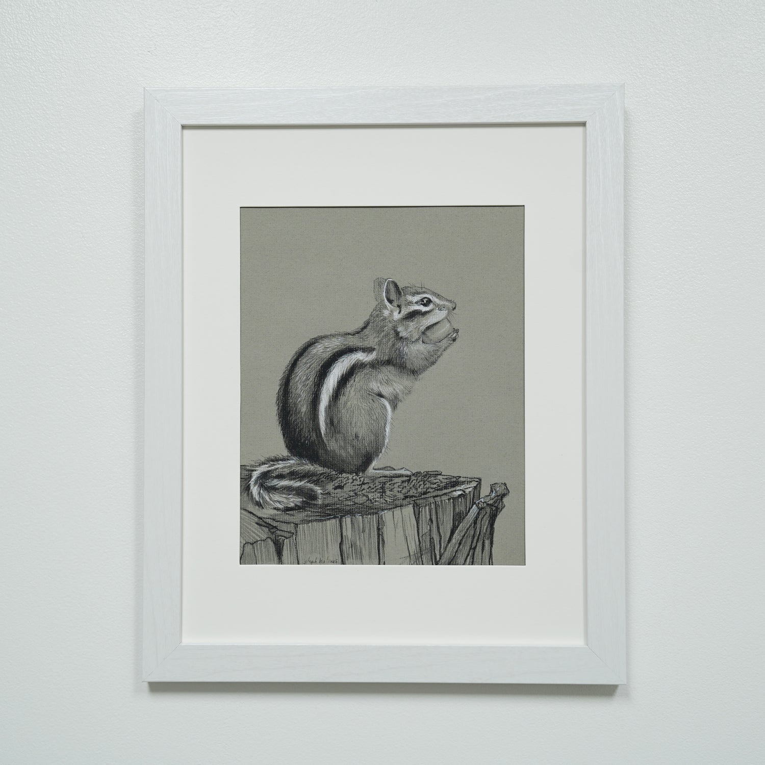 Chipmunk on Stump original charcoal drawing