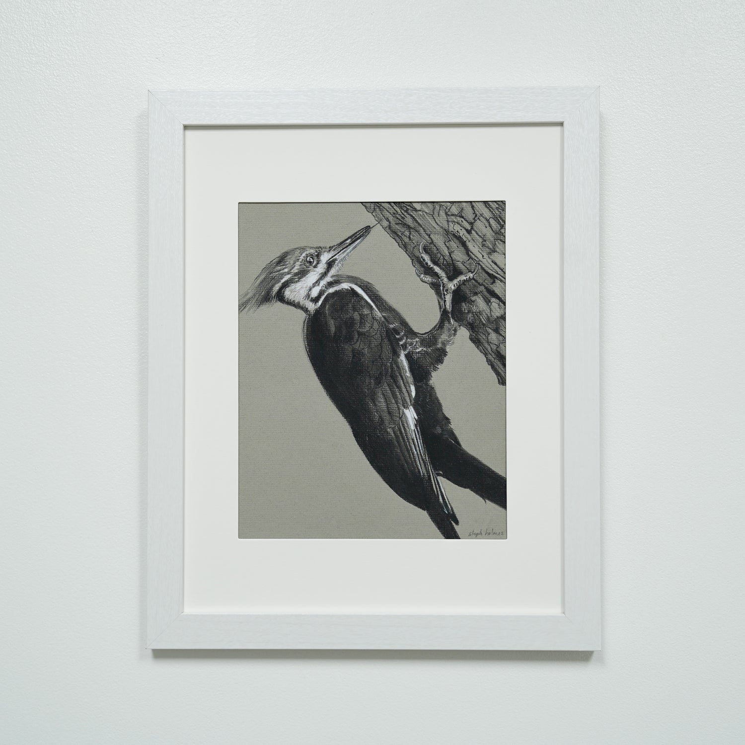 Pileated Woodpecker original charcoal drawing